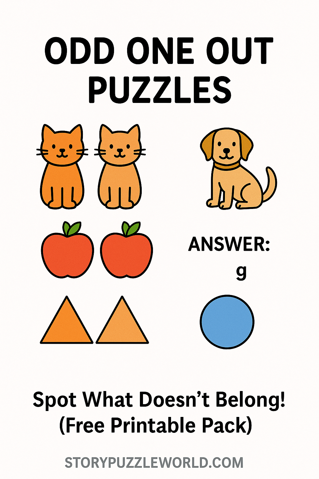 🧸 Odd One Out Puzzles – Spot What Doesn’t Belong! (Free Printable Pack)
