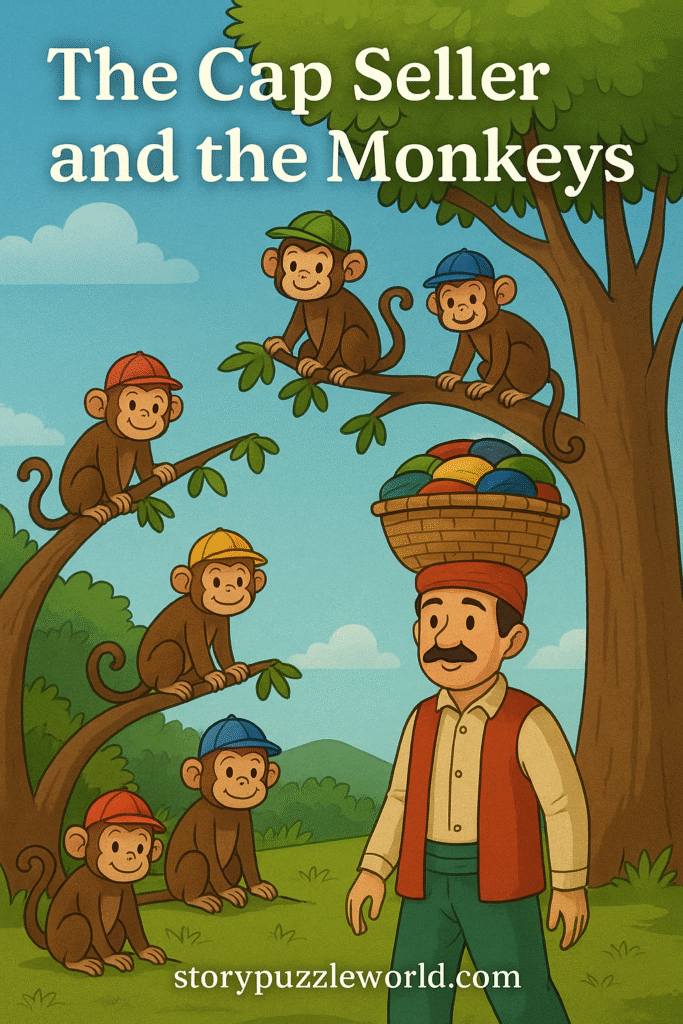 Read The Cap Seller and the Monkeys, a classic moral story for kids about cleverness and problem-solving. Includes free illustrated