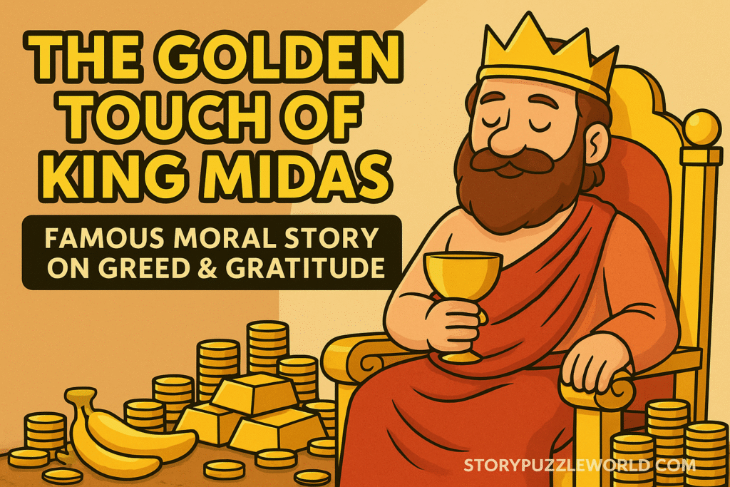 Read The Golden Touch of King Midas, a famous moral story about greed and gratitude. Perfect for kids, classrooms, and