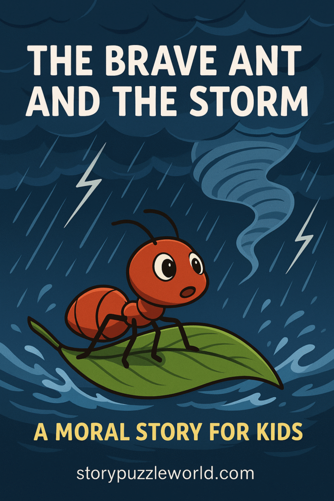 Discover The Brave Ant and the Storm, a heart-warming moral story for kids about courage, teamwork, and never giving up