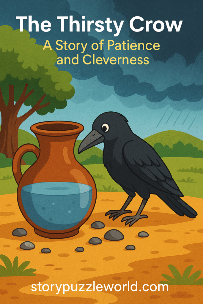 The Thirsty Crow 🪣🐦 – A Story of Patience and Cleverness (Illustrated PDF)
